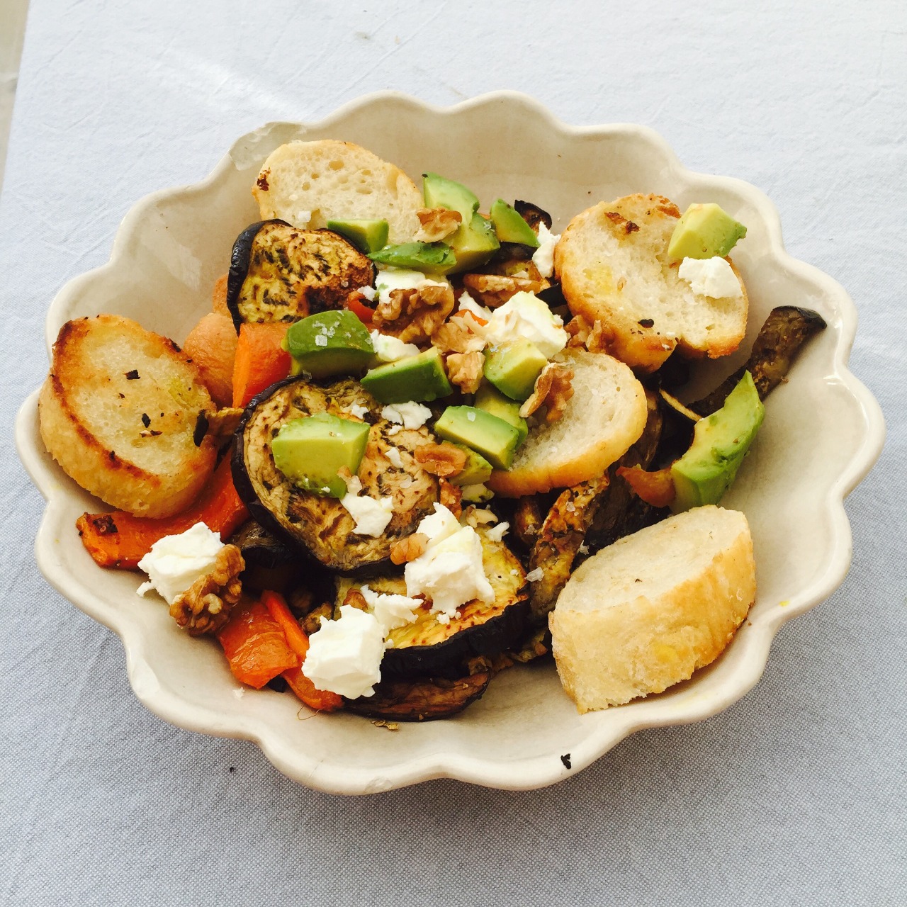 Lägg sisst i fetaost och avocado, pressa över lime och servera med hemmagjorda krutonger.