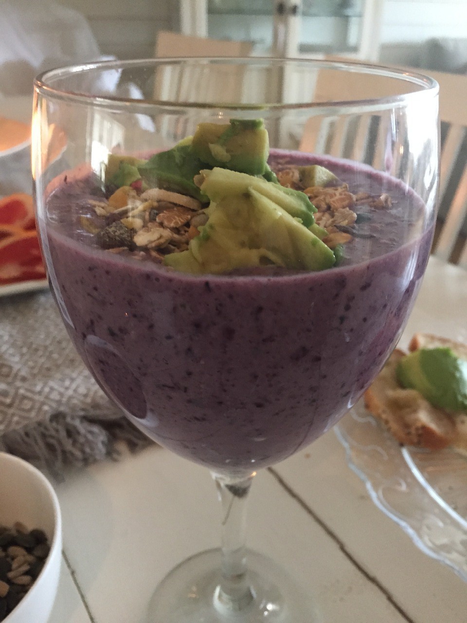 Lägg sedan i färska blåbär och en halv avocado